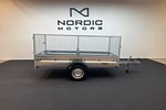 En mycket robust och prisvärd släpvagn. Tack vare att modellen är utrustad med TIP som standard blir på och avlastning enkel. Släpet är tillverkat i varmgalvat kvalitetsstål och tillsammans med en stabil ramkonstruktion och profilerade sidor blir släpet säker och stabilt vid körning. Givetvis är kapellknappar standard och rejäla lastöglor som gör användandet tryggt och säkert. För extra trygghet är även säkerhetsvajer standard på alla modeller. Detta släp har vi anpassat med uppgraderade grindar där gavlarna är öppningsbara med gångjärn samt enke hantering av borttagande av grindar om så behövs Totalvikt: 750kg Lastvikt: 600kg Mått Längd invändigt 253cm Bredd invändigt 129cm Höjd på lemmar 30cm Gallehöjd 70cm Stödhjul tillkommer. pris 390:- Välkomna till Nordic Motors i Strömstad